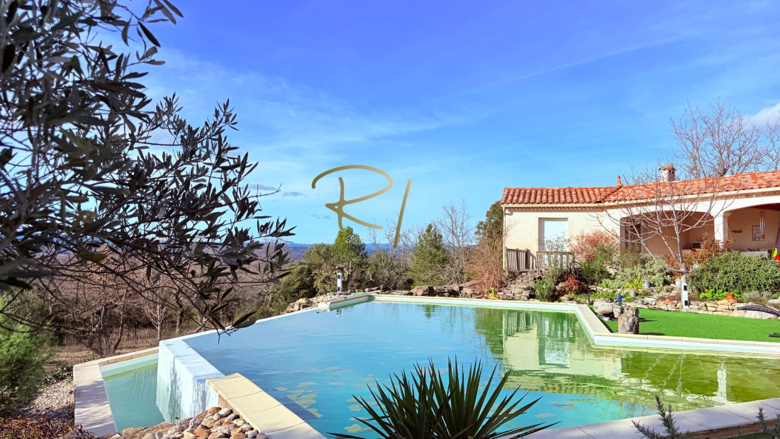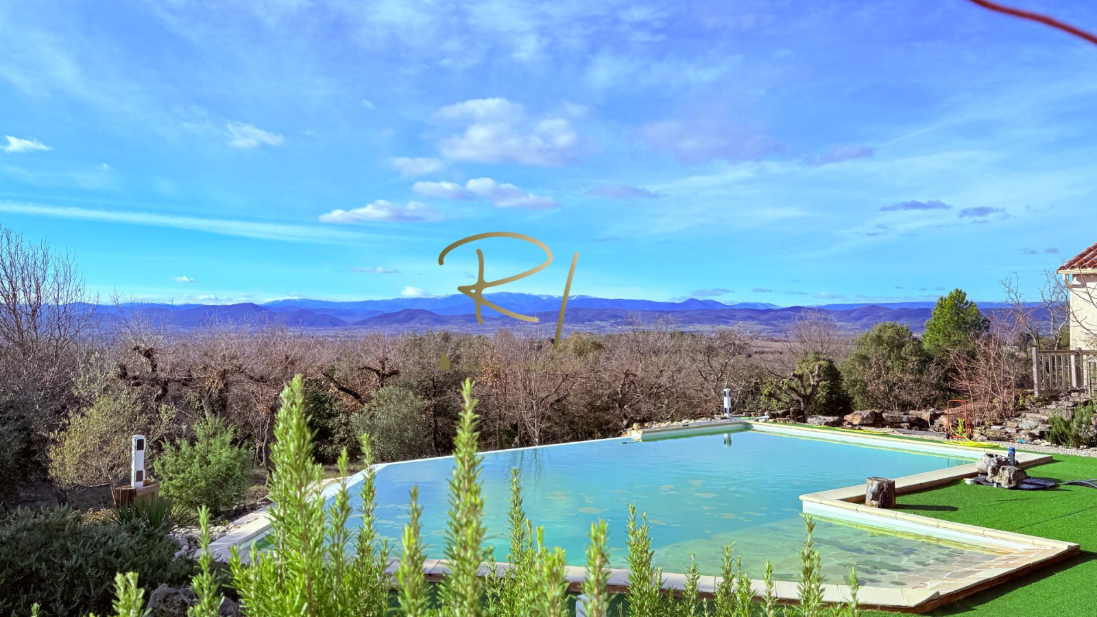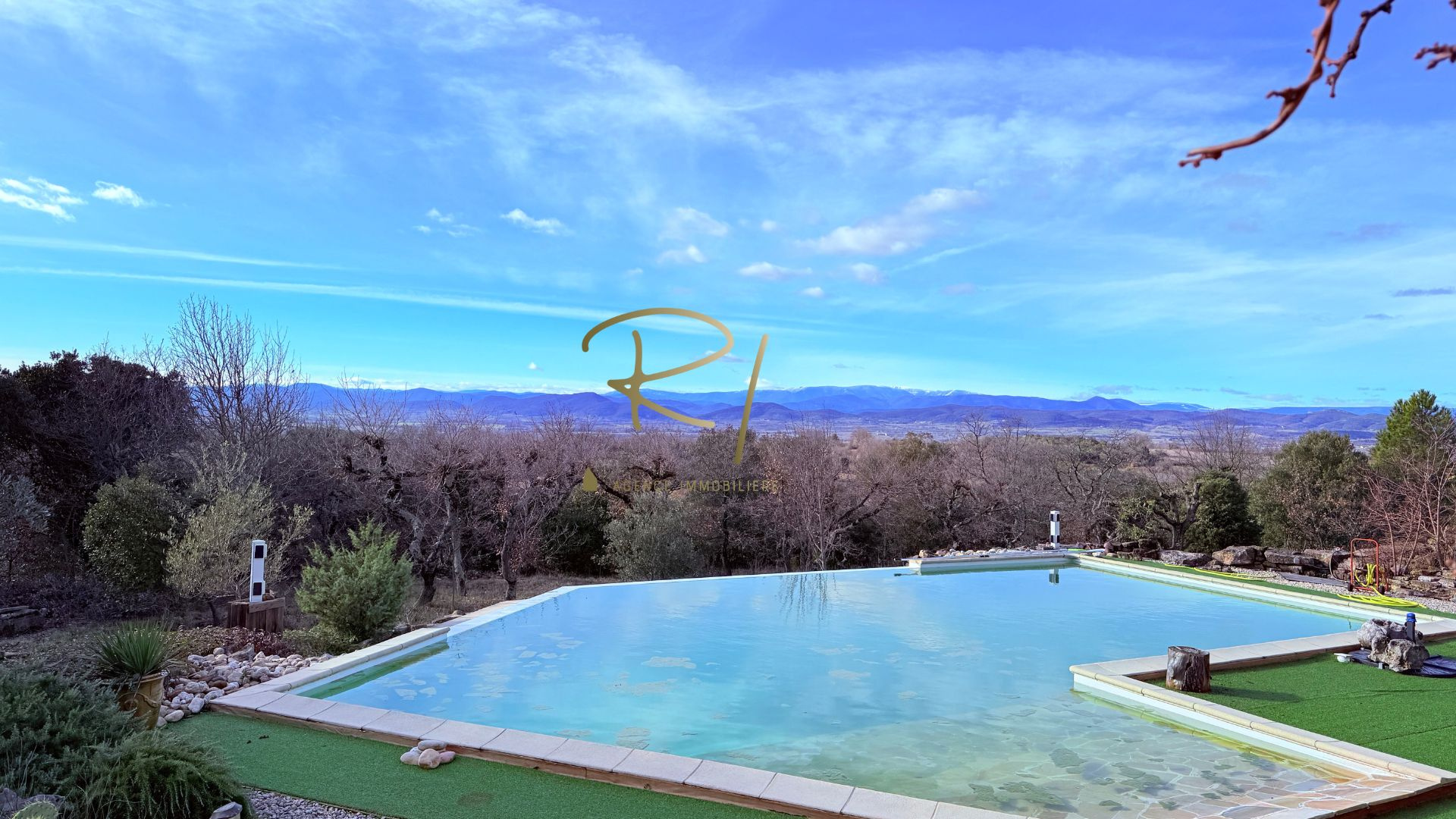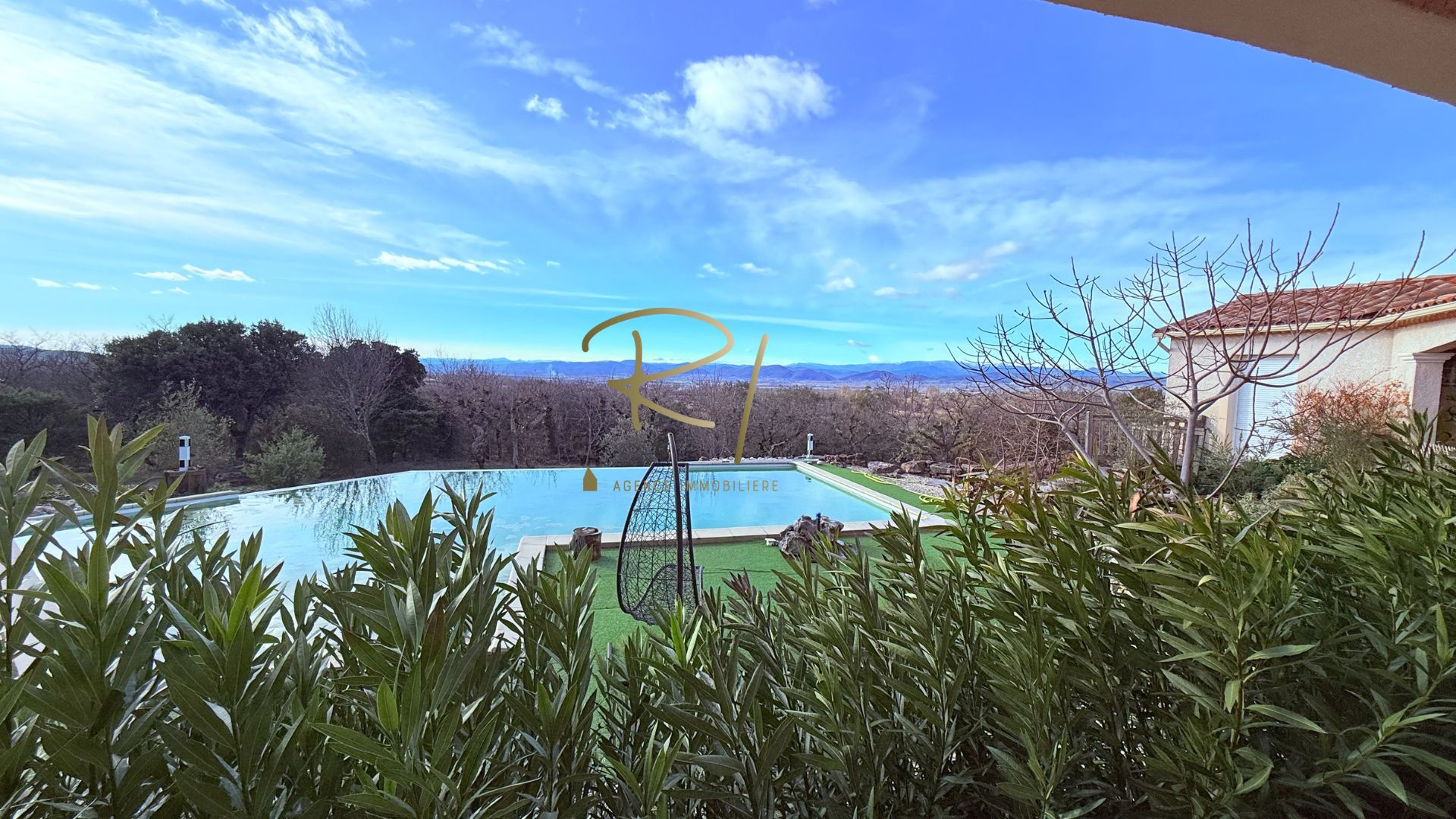 Implantée sur un terrain exceptionnel de plus de 8 730 m², en position dominante, la propriété offre une vue dégagée et panoramique sur les Cévennes.