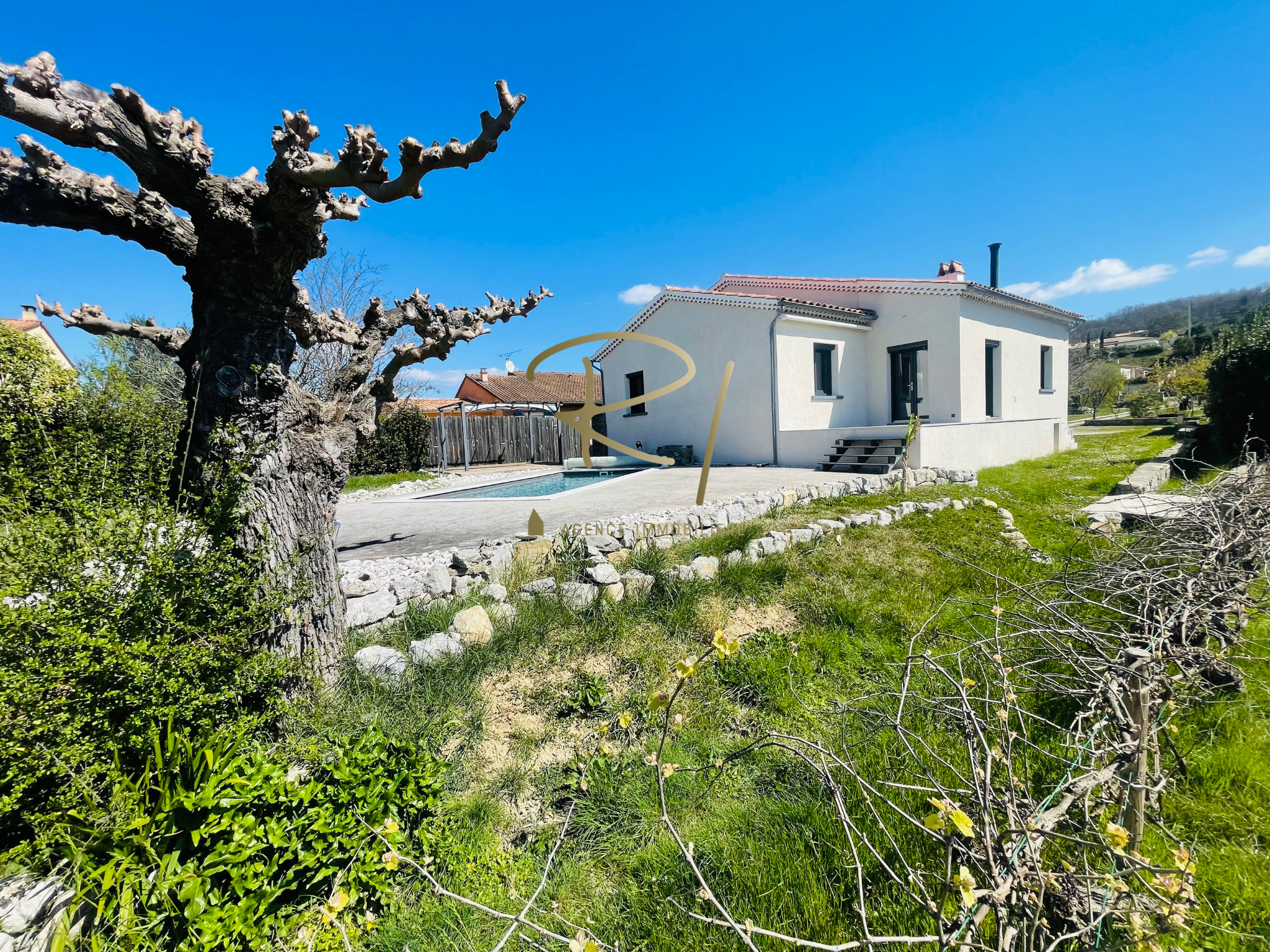 Située à proximité immédiate du centre de Ruoms à pied avec un accès direct à la voie verte, cette maison de 130m² offre un cadre de vie confortable en Sud Ardèche.